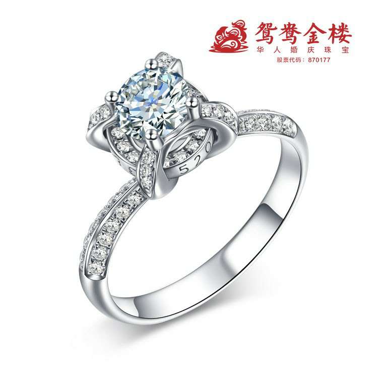 经典四爪镶,侧面为鸳鸯之心。钻石下方为可转动的圆圈,为钻戒增添了灵气。圆圈四个方向分别刻有两颗心、520、I LOVE U、AMO,四种不同方式,为爱指引。无论你身在何方,它都会把你带到我身边。